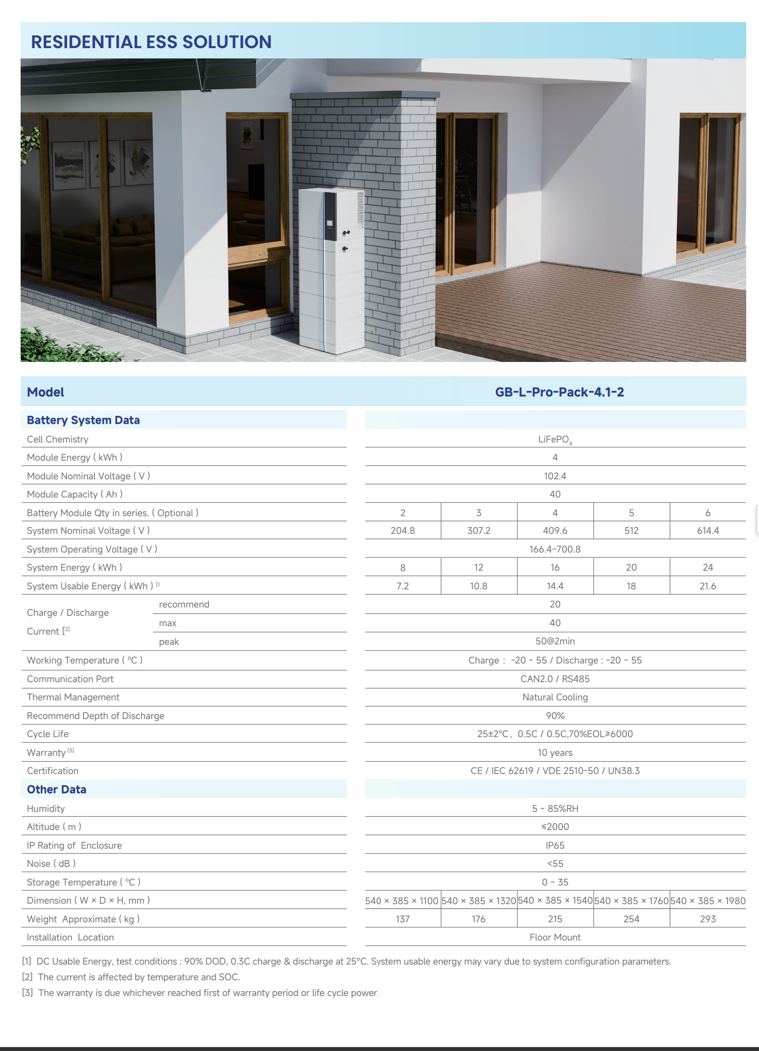 - Scalable: Flat and stackable design; Capacity of 5kWh-30kWh